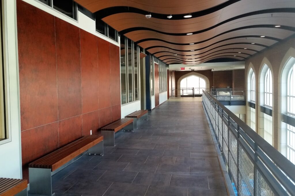 College and university facilities require sophisticated aesthetics combined with commercial-grade durability. Lecture halls shine with Sieva™ Large Panel Wall System featuring elegant wood veneer finishes, while student centers showcase creativity through Artizan Max or Transforming Wall System‘s dimensional designs. Research facilities rely on chemical-resistant standard FRP or Symmetrix for safety and longevity. Libraries benefit from Artizan Max custom panels that incorporate wayfinding elements and graphics, while athletic facilities stay protected with impact-resistant Induro™ HPL-faced FRP.